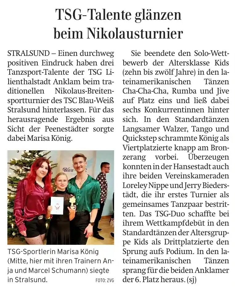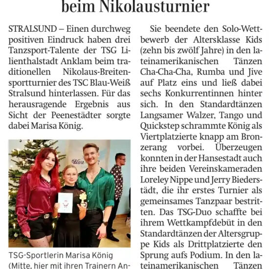 Auch beim diesjährigem Nicolausturnier in Stralsund nahmen unsere Turnierpaare teil.